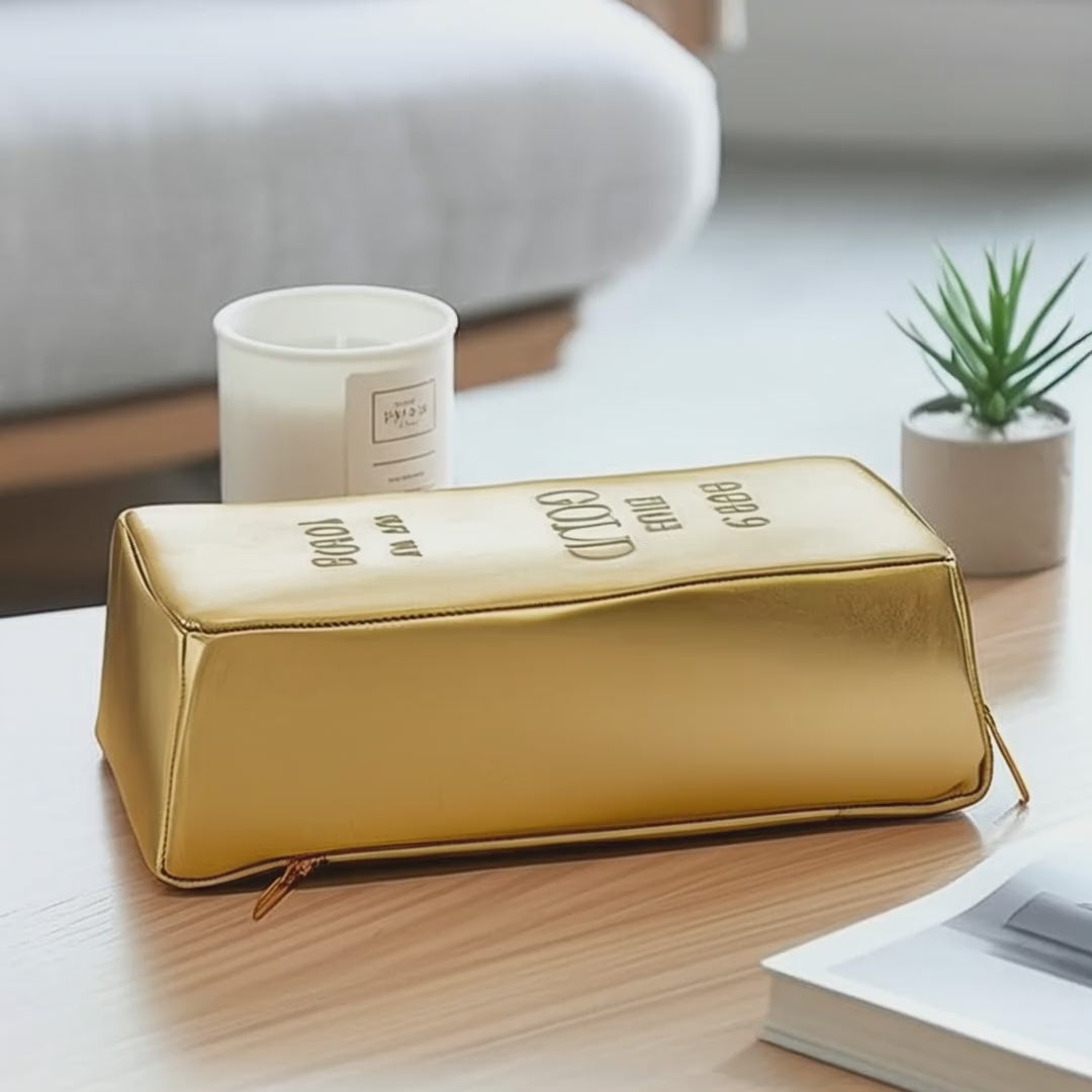 Designed to resemble a solid gold or silver bar, this decorative pillow instantly transforms your space with a playful yet elegant statement.
